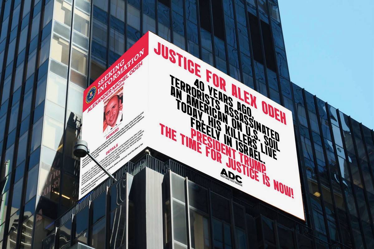 Anaheim, CA | On the 40th anniversary of Alex Odeh’s assassination, the American-Arab Anti-Discrimination Committee (ADC) welcomes the FBI’s renewed public appeal for information and notes the Justice Department’s ongoing $1,000,000 reward for tips leading to arrest and conviction. The appeal aligns with ADC’s efforts to elevate the case, including a billboard in Times Square, NYC, above Pedestrian Plaza, at the intersection of W 43rd St and Broadway.